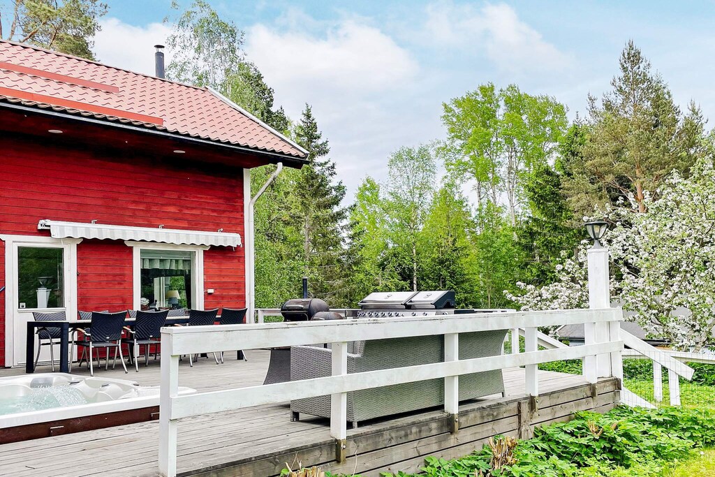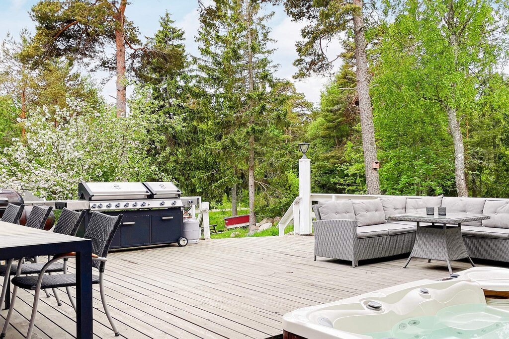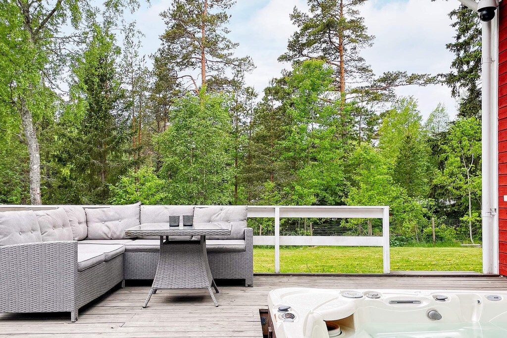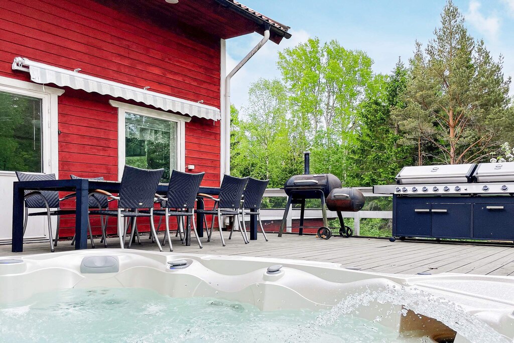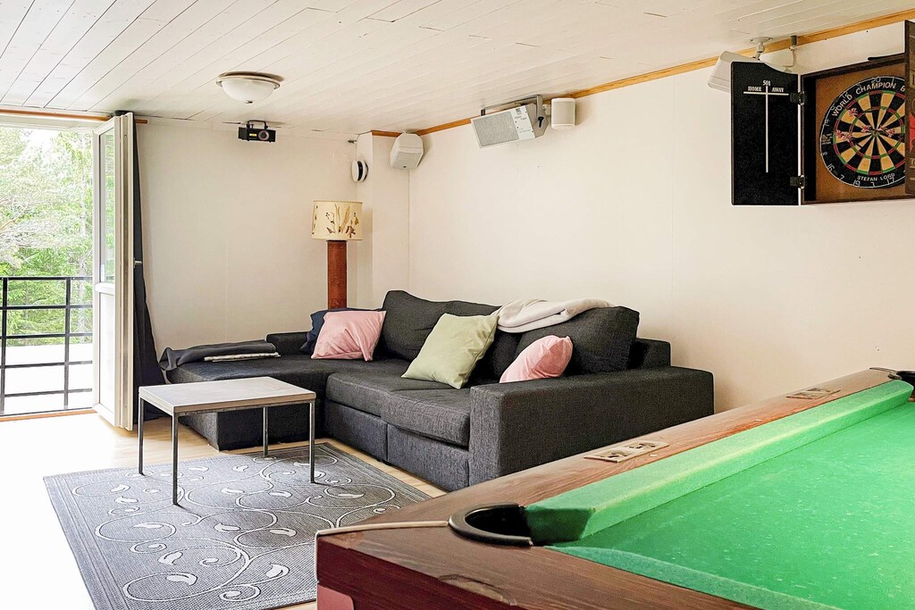 Don't miss this fantastic house you can enjoy all year round with room for many with a spacious hot tub, sauna with relaxation area, pool table and unbeatable proximity to a lovely sandy beach. Perfect place to socialize and have fun with loved ones all year round on beautiful Väddö in Roslagen in the Stockholm archipelago! Feel the peace, hear the songs of the birds and maybe the sound of the sea, sitting in the hot whirlpool with nice company or why not take a nice warm sauna looking out over the garden on a chilly evening. Here is the perfect accommodation for those of you who are looking for accommodation that not only offers a good location but also a number of activities such as billiards, darts, swimming and saunas. Can it get any better? You live here in a large house on two floors. On the entrance floor there is a kitchen and living room which are combined into one with a large dining table. Generous seating areas on the sofa for everyone in the family in front of the big TV. The kitchen is equipped with a large fridge and freezer, drinks fridge and also a washing machine. From the kitchen there is an exit to a small veranda that leads you to the sauna with a relaxation area where you can relax and let the stress run off you. There are also two comfortable bedrooms on the entrance floor, each with a double bed and a bathroom with toilet and sink. Upstairs you will find a family room with billiard room, darts, stereo system and playstation. Perfect for a game night together! From here you reach a large bathroom with toilet, sink and shower. On the upper floor there are two sleeping areas without windows, in one bedroom there is a bunk bed and a single bed. In the other space which can be called more like a dormitory where the beds will be able to be screened off with curtains from the ceiling. There are a total of six sleeping places, of which two double beds (160 and 180), a 140 bed and a 120 bed. Perfect for the young or the large family that wants to share a room. There is no door to close to this space. The house is located on a large, lovely lot and has a patio with seating areas, barbecue and the lovely hot tub that warms you up! About 300 meters away you will find the sea if you want to cool off a bit, a fantastic sandy beach, perfect for children. Barely 10 minutes by car you reach Älmsta where there is a grocery store, pharmacy, outdoor gym and much more such as good food at Bonden och Burgaren or Ankaret. Kröns Trädgård is well worth a visit, with a café and beautiful plants. Don’t miss Väddö Gårdsmejeri either, where there is pony riding for the children. If you want to see more animals, you shouldn’t miss Väddö Alpackagård, which has a café and a shop. Tips for excursions are Norrtälje, where you can stroll in the alleys along the canal or a trip to beautiful Grisslehamn where you can take a trip with the Eckerö line!